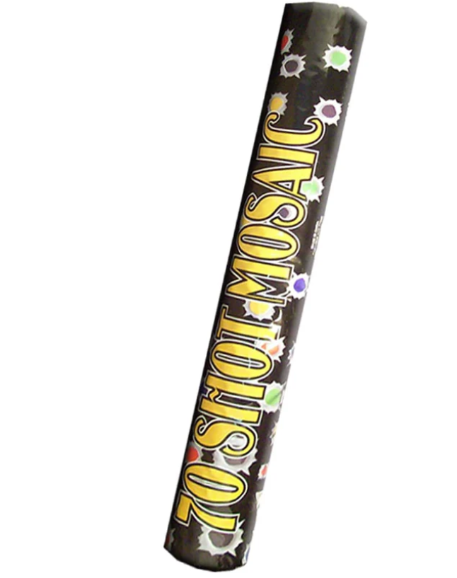 Barrage with 70 shots of Blue, yellow, green, red, silver star with tail.
