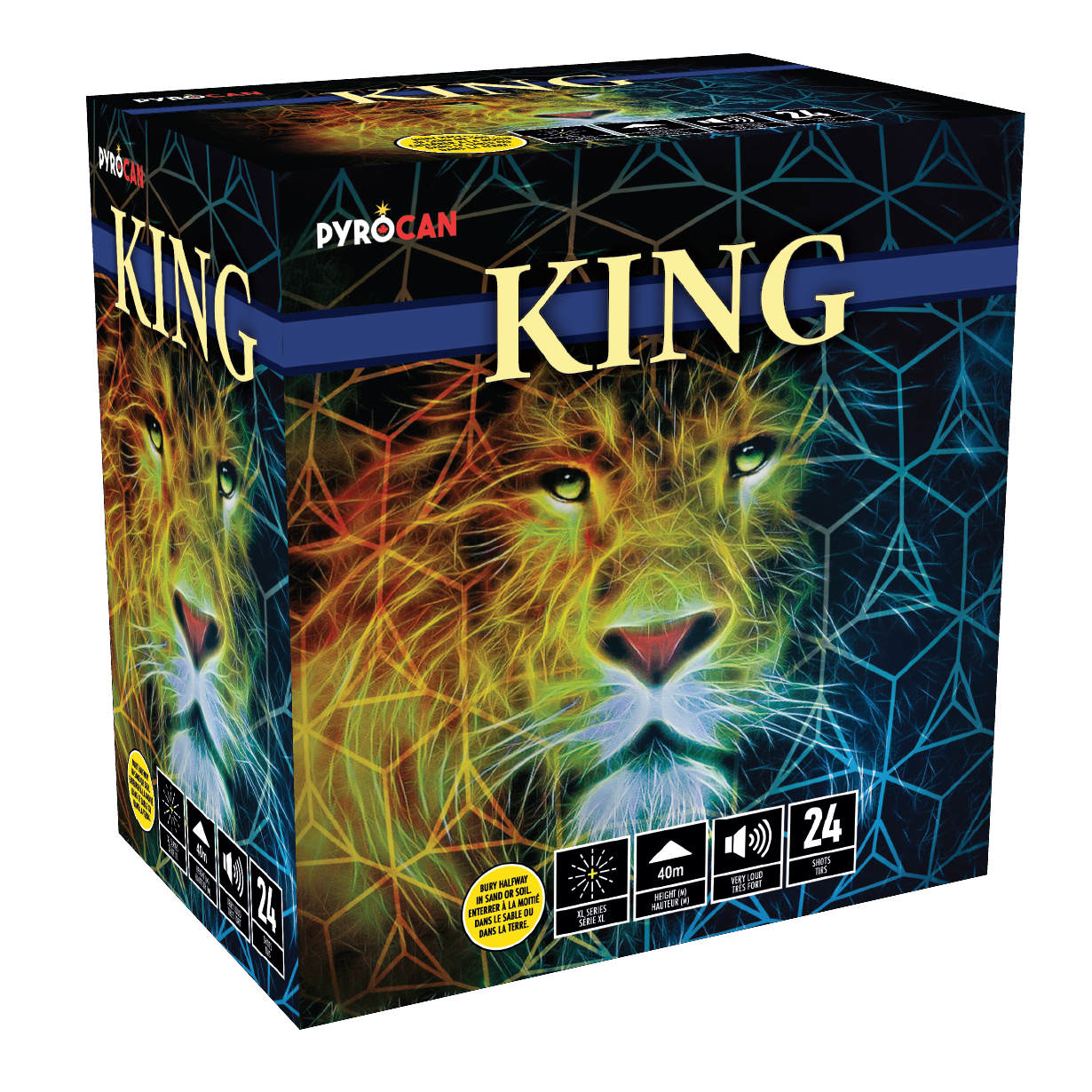 24 Shots. Crackling tails burst to crackling willows red, green and blue stars.